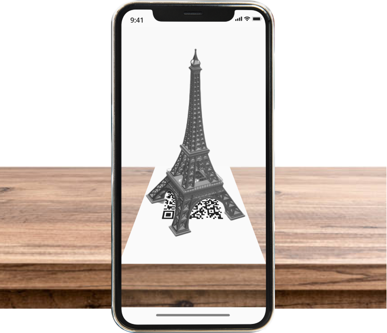 No app download or installation required. All the users need is the camera app on their smartphone. They can scan the QR code and our web app will open automatically, which will display the Augmented Reality content on top of the target. Our SaaS web application, including our 3D AR projects runs on the cloud, so that users don’t need to download a thing onto their devices.